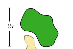 距離は短いが、ティーグランドからグリーンまで左側に要注意。グリーン左手前のバンカーは深くて大きい。横に長いティーグランドは、ティーマークの位置で難易度が大きく変わる。ティーショットのねらい目は、グリーン中央から右側。