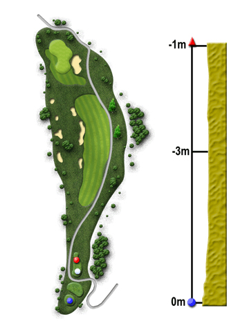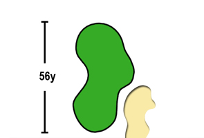 フェアウェイにはアンジュレーションが多く、第2打からゆるく左にドッグレッグしている。ティーショットはフェアウェイ右側ねらいが理想だが、右側は下り傾斜となっているので、左ねらいが安全。グリーンはタテ長なので距離感を慎重に。