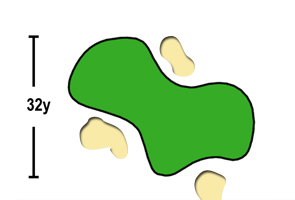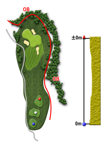 ティーグランドからグリーン近くまで大小のマウンドが続き、またグリーンも3つの深いバンカーでガードされている。横長のグリーンはアンジュレーションが大きい。ピン位置に関係なく、常にグリーン中央をねらう。